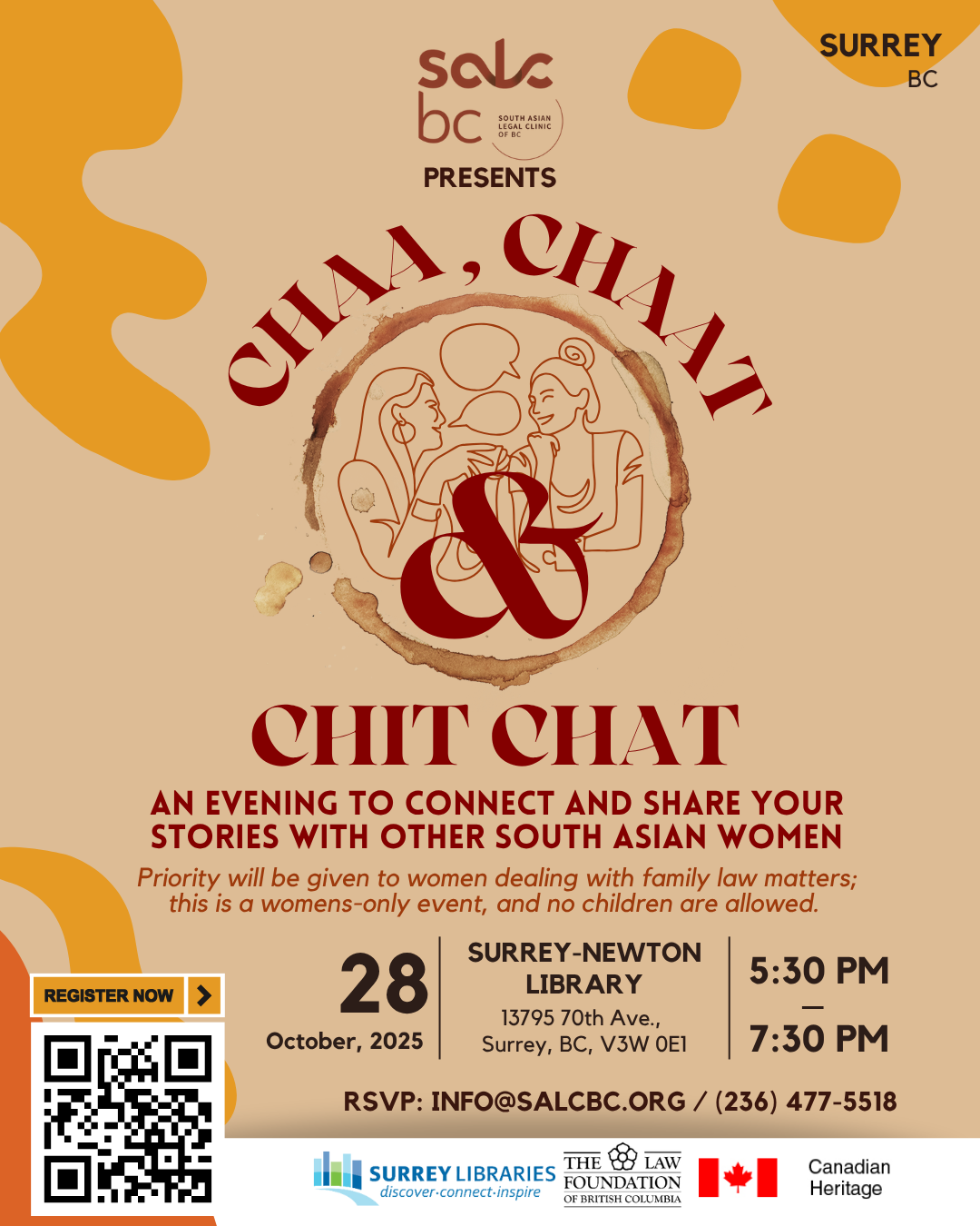 Please email at info@salcbc.org or call (236) 477-5518 to RSVP